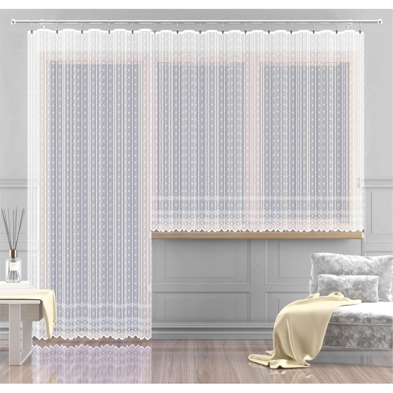 Záclona v metráži žakárová jemným vzorem, zpříjemní každý interiér